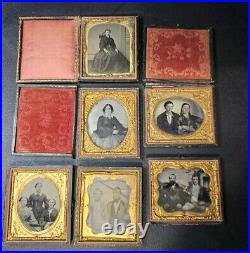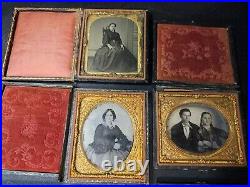 6 Sixth Plate Ambrotypes in Half and Damaged/Mismatched Full Cases