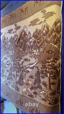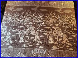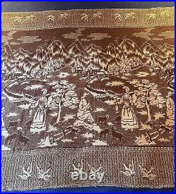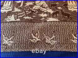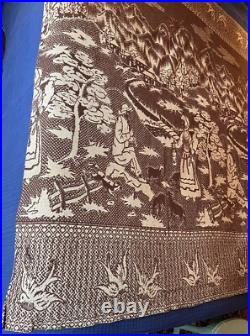 Antique Vintage Pictorial Coverlet Woven Black Americana on one side