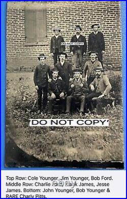 Make me a fair offer????????????? I stand behind this photo 200%. Definitely Frank James, Bob Younger, Jesse James & Jim Younger, Cole Younger, John Younger, Bob Ford, Charlie Ford & Charly Pitts. Attention: This is a Very Rare Large 4x 6 inch tintype photo images.