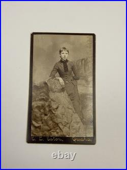 Eaton Omaha Young Native American Lady Outdoor Scene CDV Carte De Visite Photo All the photos I'm listing came from one collector here in San Diego. Measures at approximately 4" x 2 1/2". The Item in this lot is in used condition. It's old so has some wear, scratches and discoloration due to age and everyday use.