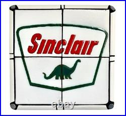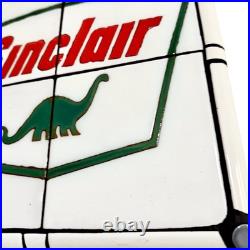 The bold red Sinclair lettering and classic green apatosaurus stand out against a glossy white background, all bordered with sharp black framing lines for that vintage sign feel. Perfect for collectors of automobilia, lovers of retro Americana, or fans of ceramic art, this piece would look fantastic in a garage, studio, office, or man cave.Design: Sinclair logo with green dinosaur and red lettering. Condition: Brand new, handmade by artist.
