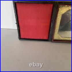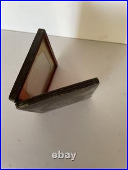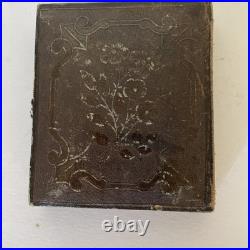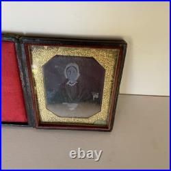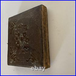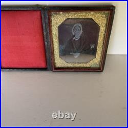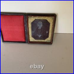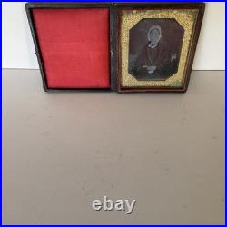 Quarter Plate Daguerreotype Lady, White Bonnet Cape, Holding Bible, Paper Case