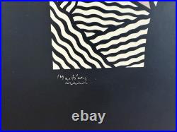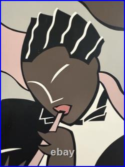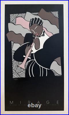 From a clean smoke-free home. This rare signed Martinez African American jazz player Mirage Edition silkscreen poster from 1981 is a collectible piece showcasing a unique design inspired by black Americana culture. Made in the United States, this poster captures the essence of jazz music and the African American experience through a striking visual representation. Perfect for collectors interested in cultural artifacts and artistic expression, this silkscreen poster, previously frame and protected for 43 years. It is still professionally mounted on a backing board, and ready to be framed and matted again.